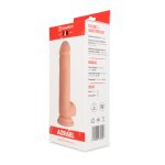 Su diseño simula a la perfección un vigoroso pene real, sus 20,2 cm de longitud, la forma del glande, así como sus venas y testículos son totalmente realistas.
